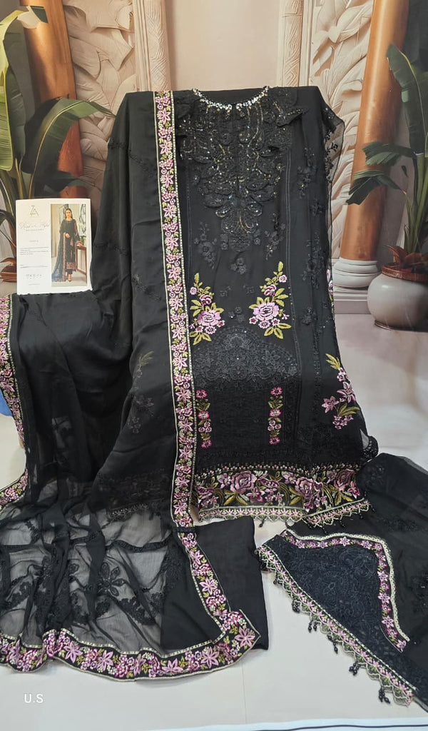 Semi-stitched Embroidered and Hand Embellished Chiffon Shirt.